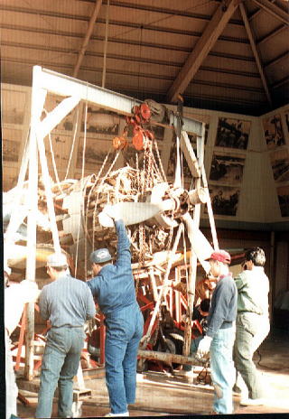 エンジン取り卸完了。 後部胴体の切り離しに掛かる。