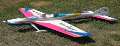 2号機、同社の「スリースター」40エンジンを飛ばす、中翼で、テーパー翼の為、機速が早くびびりまくったが、スタント性が大変良かった。
