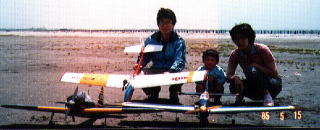千葉県に在住の頃、85年5月木更津海岸へ友達と遠征。ちなみに横の男性は、東間さん、その横は、長男、妻です。(顔が良く見えなくて良かった!)、MK40の零戦とスーパーシクロリー40(ブルーエンジェル仕様)